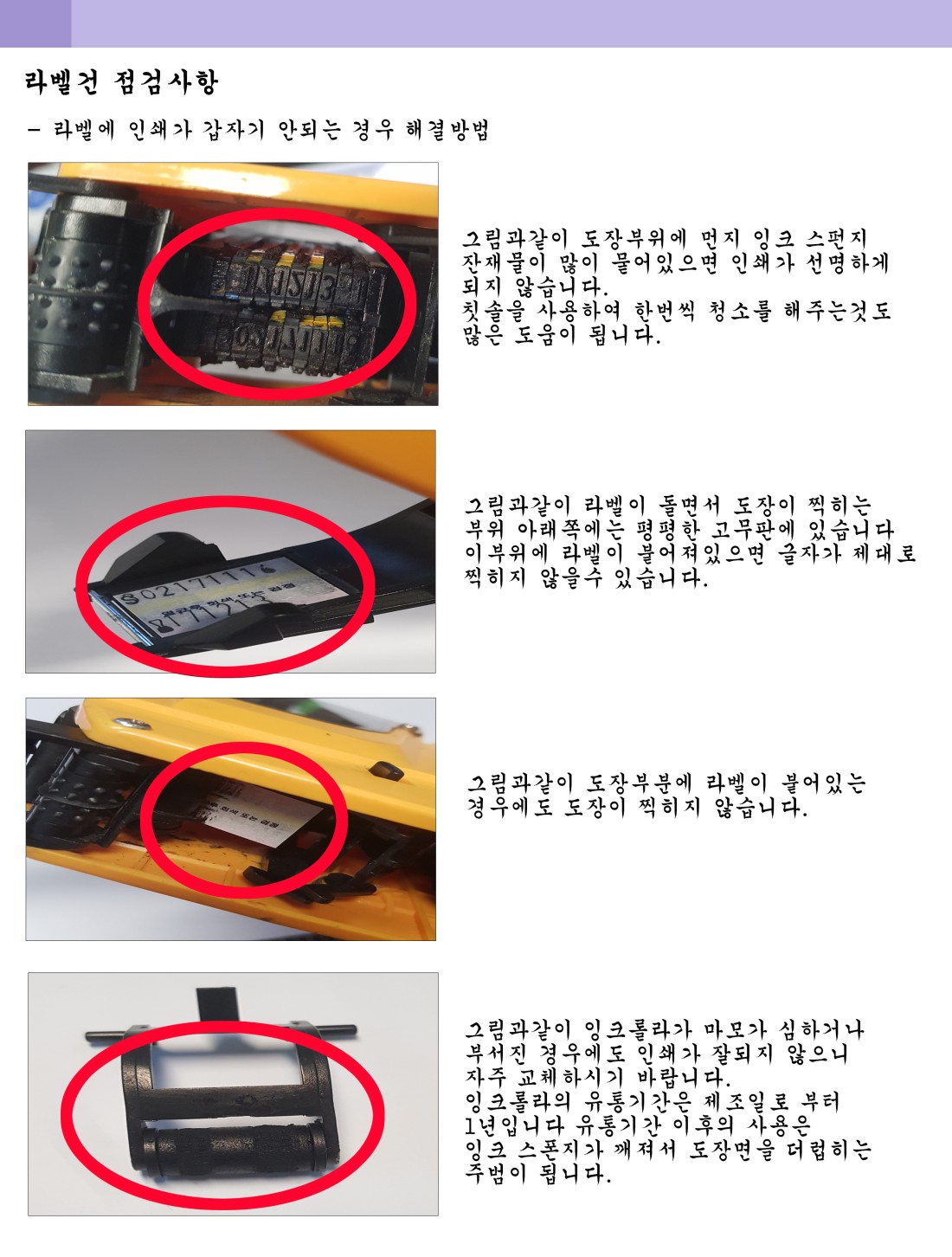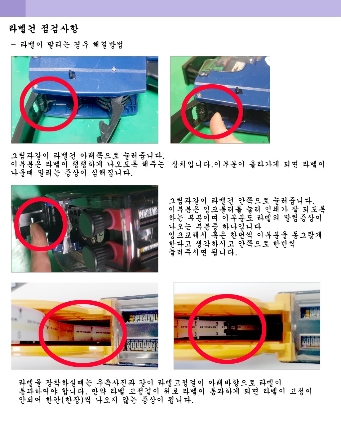 아래의 그림을 참조하여 라벨 걸림증상이 나오면 다음과 같이 해결해보세요.